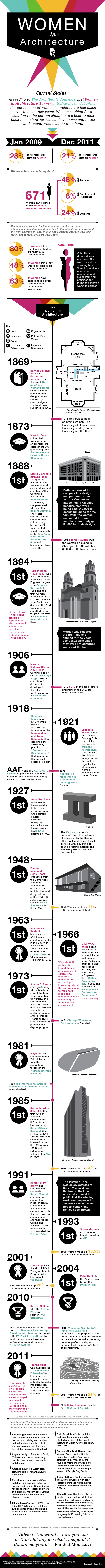 با توجه به اینکه امروز روز جهانی زن بود، ضمن تبریک این روز به همه زنان جهان بخصوص زنان هنرمند و معمار، لازم است که ما با نقش زنان در معماری بیشتر آشنا شویم. نقشی که هر روز پررنگتر شده و ما مشاهده میکنیم که در این چند سال اخیر زنان معمار بخوبی توانستهاند تواناییهایشان را در این زمینه نشان دهند. حتی جایزه معروف جین درو در این دو سال اخیر به دو معمار زن ( سال 2012 برای زاها حدید و سال 2013 برای ایوا جیرینکا) تعلق گرفته است. در ادامه مطلب با اینفوگرافی جالبی در این زمینه همراه شوید.