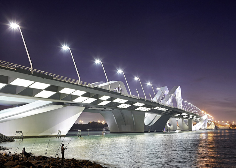 این پل 842 متری جزیره ابوظبی را به زمین اصلی آنسوی آب متصل میکند و شامل موجهای متناوب بتنی است که به سمت بالا و پایین آب امتداد میابند و 64 متر از سطح آب فاصله دارند. این پل از بزرگراهی 4 بانده تشکیل شده و در کنارههای آن دو معبر معلق قرار دارد. زاها حدید این پروژه را در سال 2010 به اتمام رسانده است.
