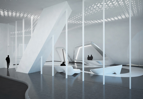 تصاویری که از داخل ساختمان ارائه شده، از طراحیهای آینده و مدرن زاها حدید خبر میدهد.