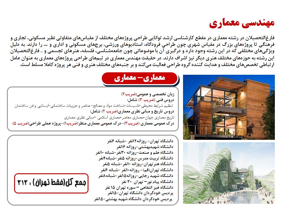 با توجه به سوالاتی که شما دوستان در مورد ظرفیت دانشگاهها پرسیده بودید، تصمیم گرفتم تا در این مطلب به ظرفیت پذیرش گرایشهای مختلف مجموعه معماری و هنرهای ساخت به همراه توضیحات کوتاهی ار این گرایشها بپردازم. همراه من باشید.