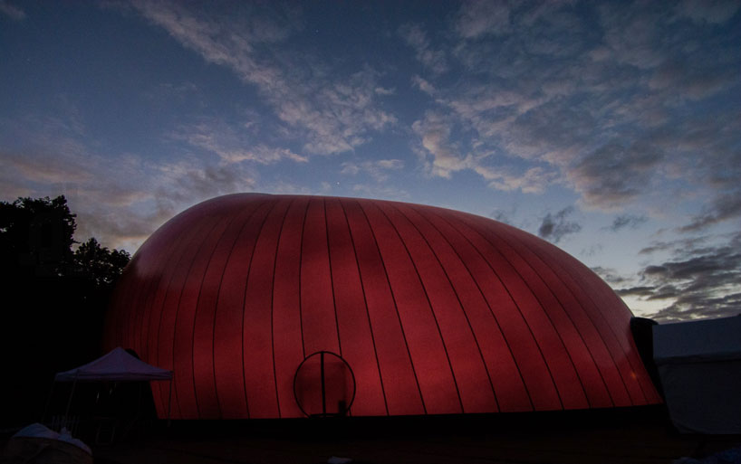 این سالن قابل حمل ظرفیت حدود 500 نفر را دارد. صدندلیها و صحنه اجرا نیز همگی دست ساز و قابل حمل هستند و با نور بنفشی ناشی از رنگ پوسته حالتی دلانگیز در طراحی داخلی به وجود میآورد. برای باد کردن این سازه از گاز هلیوم استفاده میشود. برای مشاهده اسکیسها و روند طراحی این تالار به این صفحه بروید.