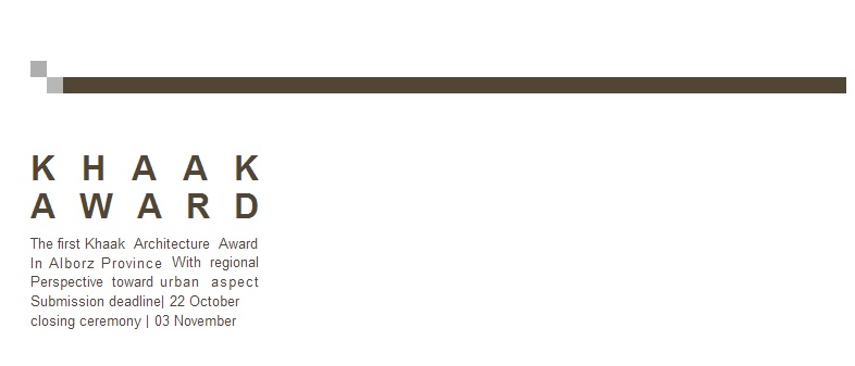 اولین دوره جایزه معماری خاک با گرایش منطقه ای به سیمای شهری استان البرز با حمایت سازمان صدا و سیما البرز، شهرداری کرج و شورای اسلامی شهر کرج با دعوت از طراحان و سازندگان پروژه های اجرا شده در سطح استان البرز در مقیاس های گوناگون،منطبق با شرایط و مدارک درخواستی به شرح زیر برگزار می گردد: