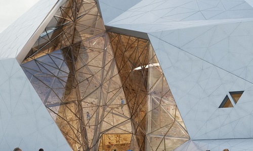 پانل هایی از الیاف سیمان سفید بکاررفته در نمای بیرونی این ساختمان، فضا را به گونه ای مجسم می نماید که گویی ساختمان در زمینه ای از برف پوشانده شده است، در حالی که کوهنوردان در حال بالا رفتن از آنها می باشند. برای مقاومت بیشتر، طراحان از قاب های فلزی به عنوان ساختار اصلی سیستم استفاده نموده اند.